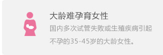 大龄难孕女性、国内多次试管失败、有个性化生育需求者、身体疾病无法自行生育者